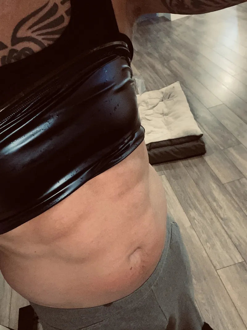 Empezás a sudar mucho más que con una remera común. Sentís un efecto térmico que activa la zona abdominal y ayuda a eliminar líquidos retenidos. La panza se ve más firme y menos hinchada.